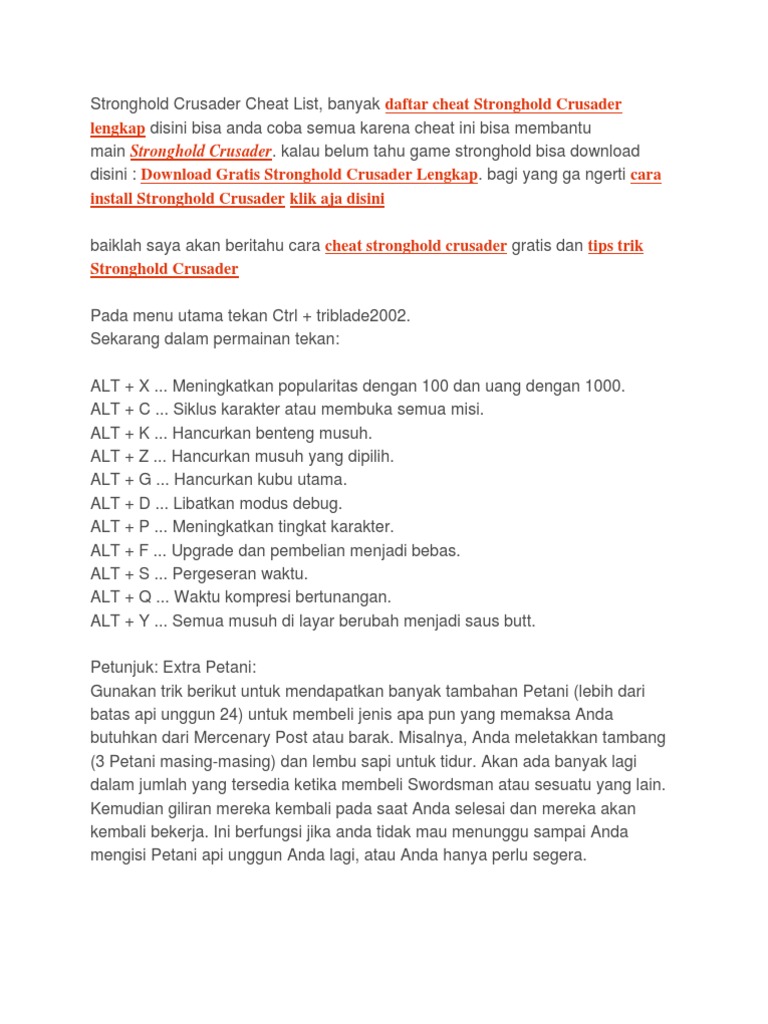 Cheat Stronghold Crusader Lengkap Dengan Bahasa Indonesia Kumparan Com from blue.kumparan.com We did not find results for: Maybe you would like to learn more about one of these? Check spelling or type a new query. Cara menambah uang stronghold crusader 2.